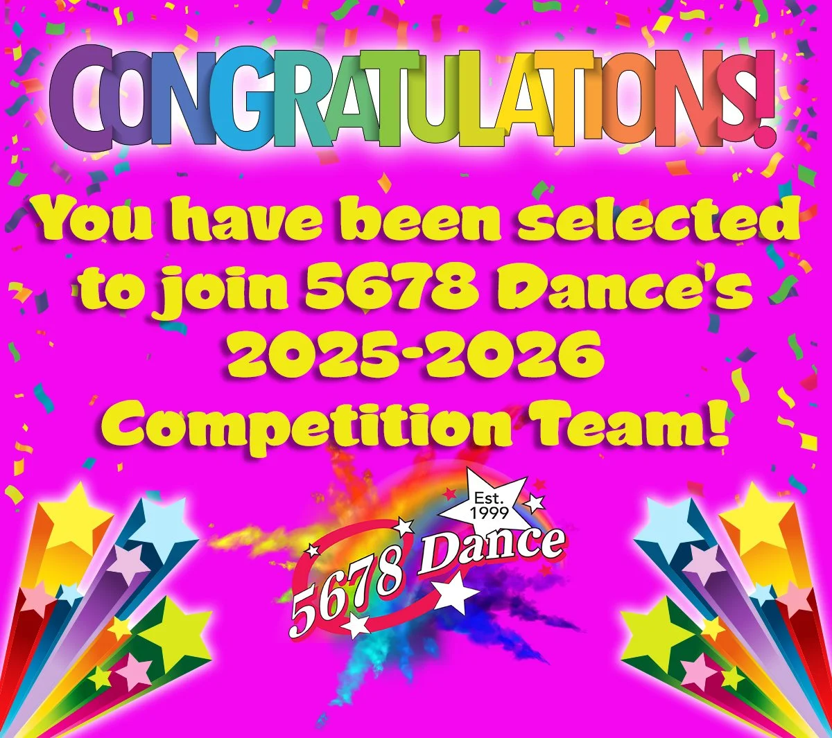 🎊 Congratulations your child has been selected to be a member of the 5678 Dance 2025-2026 Company! 💃🕺 At 5678 Dance, we believe that being a member of the Company is an incredible experience. 🌟 In addition to dance, our students learn: