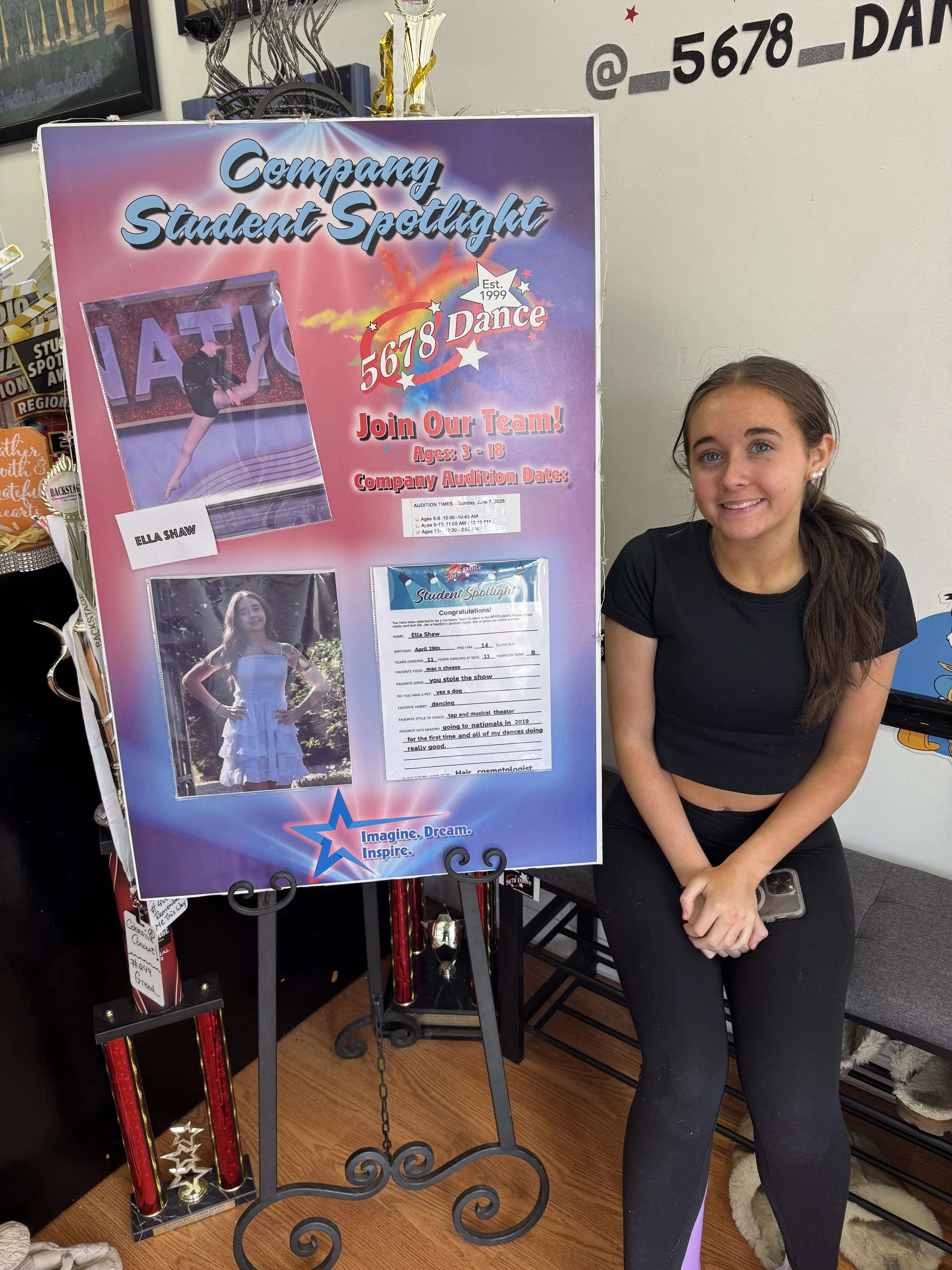 Are YOU ready to shine? We can’t wait to announce our NEXT STUDENT IN THE SPOTLIGHT next week! Let’s go, 5678’ers! 💃✨